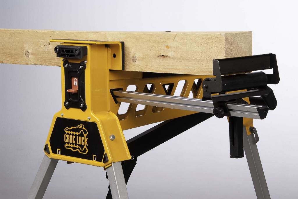 De krachtige Croc Lock is de perfecte workmate voor iedere klus, van klein tot groot. Hij is multi-inzetbaar als werkbank, zaagbok en bankschroef. Je kunt het zo gek niet bedenken of de werkbank klemt het vast. En dat doet deze krachtpatser met een klemkracht van 1000 kg. Daarmee is de Croc Lock de ideale hulp bij het bewerken van materiaal in alle soorten en maten. Deuren, kozijnen, hekwerken, plafondplaten, auto-onderdelen en zelfs fietsen zet hij muurvast. Zo heb jij je handen vrij voor het echte werk.