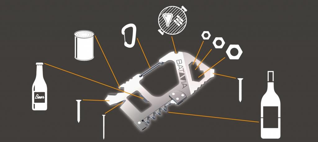 Met de multitool opener van Batavia open je zonder problemen elke verpakking. Nooit meer gedoe, gebroken nagels of uit frustratie je tanden in een verpakking zetten. Onmisbaar in en om het huis, in de werkplaats, op de boot en op de camping!